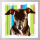 All dog lovers - especially Italian Greyhound, Whippet, and Greyhound owners - will appreciate this canvas print! Showing the festive side of the breed with lime, turquoise, and bright berry coloured stripes behind a loveable pup! Perfect fun accent to any room in the house or your business.