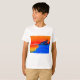 100% cotton so perfect for summer, It is a nicely designed t-shirt, the fabric is soft and the seams finished well, the body of the t shirt has no side seams. I bought a medium size for my two grandsons, aged 9 and 8 it will be slightly big on them but I would rather that than too small