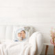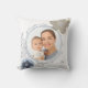 Modern photo pillow with editable wording so that you can create a unique keepsake for any one for any occasion. The design features orla kiely style pop art flowers in neutral beige, blue and grey with paint splatters and multi line drawn photo frame. The message is lettered in casual handwritten script typography and currently reads "first mother's day as my beautiful mummy". You can also update the year (or leave it blank if not required). If you would like the change the white background colour, click "customise further".