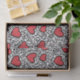 This vibrant pattern features bold, red hearts scattered across a white background filled with dynamic black doodles. The playful design, reminiscent of pop art, uses strong lines and whimsical shapes to create a lively and energetic visual. The juxtaposition of bright red hearts and abstract black strokes evokes a sense of love and spontaneity.