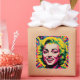 A striking pop art portrait of a movie star, reimagined with bold, bright colours and graphic elements. This piece captures the essence of pop art, celebrating the enduring influence of cinema and its stars.