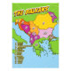 A stylised map of the Balkan region, featuring a pop art aesthetic with bold outlines and a dotted background. The map is divided into 13 numbered regions, each representing a different country.