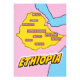 This visually striking map of Ethiopia is a fusion of geography and pop art. Bold colours, iconic imagery, and playful typography come together to create a unique and captivating piece.