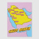 This visually striking map of Saudi Arabia is a fusion of geography and pop art. Bold colours, iconic imagery, and playful typography come together to create a unique and captivating piece.