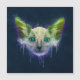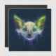 A textural digital painting of a Lykoi cat head with scratches, splashes, and drips over a rough textured background.