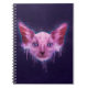 A textural digital painting of a Lykoi cat head with scratches, splashes, and drips over a rough textured background.