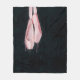 A textured digital painting of delicate pink pointe shoes with scratches, splashes, and drips. The background is a rough texture in a dark aqua tint.