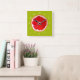 A cute and colourful vibrant pink grapefruit slice from an original painting by artist Sacha Grossel. This large pop art style fruit is pink and very bright and colourful against a customisable lime green coloured background. Quirky and original.