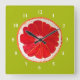 Pop art pink grapefruit art original watercolour square wall clock