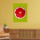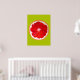 A cute and colourful vibrant pink grapefruit fruit slice from an original painting by artist Sacha Grossel. This large pop art style fruit is pink orange and very bright and colourful against a customisable pine lime coloured background. Quirky and original.