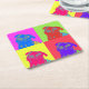 Bright and fun dog coaster. Retro and stylish, this custom design features a portrait of a pug with a pop art screen print style in bright colors. Perfect for dog lovers.