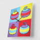 A playful celebration of color, texture, and repetition, this design presents a quartet of stylized curling stones rendered in a bold, painterly pop-art style. Each stone sits within its own vibrant color field, swapping hues and combinations to create a rhythmic visual variation that feels both cohesive and dynamic. The thick, hand-drawn outlines and visible brush-like textures give the forms a tactile, almost folk-art warmth, while the simplified shapes and high-contrast palette lend a modern, graphic punch. The result is a lively, whimsical composition that captures the spirit of curling through a lens of cheerful abstraction and expressive color.