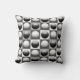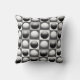 Throw pillow in a Pop Art textile pattern of 3-d effect spheres on a contrasting chequerboard grid of squares - shades of grey / grey, black and white