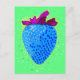 Bright blue strawberry on a green background in Pop art style. For Contemporary & Pop Art lover.