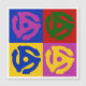 Graphic of four bright and colourful 45 RPM plastic record inserts in a retro classic pop art style.