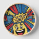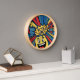 Eye-catching pop art wall clock with bright comic-style shapes in red, yellow, and blue. A fun and modern statement piece