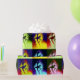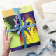 A ballerina figure repeats in colourful pop art fashion on this wrapping paper.
