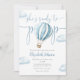 This charming baby shower invitation features a cute blue hot air balloon and clouds, along with elegant script typography. With your registry QR code and special photo on the reverse. Designed by Thisisnotme©