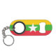 Crack open your drinks in style with this vibrant Myanmar flag keychain bottle opener! Compact, colourful, and a perfect way to show off your national pride wherever you go. Whether it's for your pocket or your keys, this little tool will always come in handy—cheers to convenience and country!