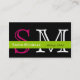This business card design is sure to attract attention and help you stand out in the crowd. The background is black with lime green and pink accents to set off your text. Perfect for any business but especially great for a makeup artist, bridal salon, wedding planning, event planning, catering, nail salon, spa, jewellery, cosmetologist, fashion, beauty consultant, or any time you would like an elegant touch. Add your information and it is ready to go!
