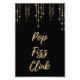 Art prints are the perfect decoration to dress up your home, or upcoming event. This simple black and gold design features the words "Pop Fizz Clink". It's perfect to put on display at a cocktail party, new year's celebration! or wedding reception.