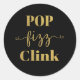 POP FIZZ CLINK Black & Gold Round Sticker