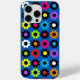 Black and white multicolor flower power case. Background colour can be customised.