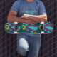 Add a bold graphic touch to your ride with this skateboard deck featuring a vibrant geometric pattern in purple, turquoise, and yellow. Inspired by playful pop art and abstract shapes, this design is perfect for skaters who love unique, colorful, and eye-catching boards.