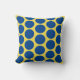 Pillows add a great accent to your home decor and they'e an inexpensive way to decorate. These fun geometric dots will add a pop of pizazz to any room. These big blue dots have a thin, white line on the outer edge and they're set on a background of bright yellow. Background colour can be customised to you personal colour scheme.