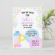 Invite your guests to "pop on over" to your birthday bash with this charming and fun party invitation! Featuring a colourful bottle of bubbles, a bubble wand, and a joyful array of bubbles floating around your personalised party details, set the tone for a bubbly and cheerful celebration. This adorable and whimsical design promises a delightful experience for all attendees as they anticipate a day filled with joy and happiness.