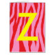 Pink and red zebra monogrammed greeting card.