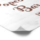My thoughts on this product was excellent. Well printed in a gloss finishing and just the size l ordered. It arrived in good condition and am overall satisfied with the product. The printing turned out great. I was quite surprised with the finishing touch to the poster. The semi gloss was just right and a perfect size to display at the wedding.