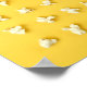 This design features popped popcorn kernels arranged in a neat grid on a yellow background. One kernel is only half popped.