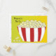 A bright design featuring a big red and white bowl of buttery popcorn on a shaded yellow background. Customise as desired.