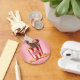 Cute pug puppy in retro popcorn dispenser with cloudy pink background, painted by artist Maryline Cazenave.