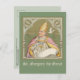 On 3 September 590, a fiftyish Benedictine monk was elected 64th Pope by unanimous acclamation. He was to become known as Pope St. Gregory the Great (c. 540-12 March 604). Here, St. Gregory is shown wearing formal papal regalia—a gold triple crown tiara, an elaborate pectoral cross, and a purplish pink ‘mantum’ or long cope with a gold-coloured lining over a white, floor-length linen tunic or alb. In his white-gloved hands, he holds pen and scroll. A white dove representing the Holy Spirit whispers in his ear, divinely inspiring his writings. The scene takes place in an alcove under a slightly pointed stone arch and against a green and gold brocade curtain suspended from a rod. The whole is meant to recall what was seen by his secretary St. Philip the Deacon, who peeked behind just such a curtain when St. Gregory repeatedly paused at length while giving dictation. The artwork does not represent the incident per se; rather, it compresses several ideas at once—the grandeur of the Mediaeval papacy, St. Gregory’s importance as writer—he is one of the Four Great Doctors of the Latin Church, and his miraculous inspiration. + Pope St. Gregory is patron saint of teachers and students, and musicians and singers (but that’s another story!). + Feast: September 3 +