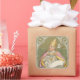 On 3 September 590, a fiftyish Benedictine monk was elected 64th Pope by unanimous acclamation. He was to become known as Pope St. Gregory the Great (c. 540-12 March 604). Here, St. Gregory is shown wearing formal papal regalia—a gold triple crown tiara, an elaborate pectoral cross, and a purplish pink ‘mantum’ or long cope with a gold-coloured lining over a white, floor-length linen tunic or alb. In his white-gloved hands, he holds pen and scroll. A white dove representing the Holy Spirit whispers in his ear, divinely inspiring his writings. The scene takes place in an alcove under a slightly pointed stone arch and against a green and gold brocade curtain suspended from a rod. The whole is meant to recall what was seen by his secretary St. Philip the Deacon, who peeked behind just such a curtain when St. Gregory repeatedly paused at length while giving dictation. The artwork does not represent the incident per se; rather, it compresses several ideas at once—the grandeur of the Mediaeval papacy, St. Gregory’s importance as writer—he is one of the Four Great Doctors of the Latin Church, and his miraculous inspiration. + Pope St. Gregory is patron saint of teachers and students, and musicians and singers (but that’s another story!). + Feast: September 3 + Image Credit (M 067): Antique image of Pope St. Gregory the Great from a devotional print in chromolithography commemorating the 1300th anniversary of his accession to the papacy, originally published by Nákl. Karla Šimka, Č[eské] Budějovice, (now the) Czech Republic, 1890, from the designer’s private collection of religious ephemera.