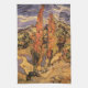 Two Poplars on a Road Through the Hills by Vincent van Gogh is a vintage fine art post impressionism landscape nature painting. An autumn season scene with two poplar trees on a mountain with a winding lane and swirling clouds in the sky. beautiful fall colours.