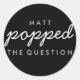 Popped the Question Popcorn Welcome Bag Sticker in Black and Silver. Adhere this sticker to a bag of freshly popped popcorn!