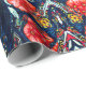 A sophisticated wrapping paper with orange red poppies and blue swirls plus some geometric elements and stars. Designed by Alexandra Cook aka Linandara for a bright happy future.