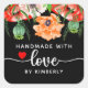 Poppies Handmade with Love Black Square Sticker