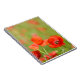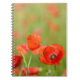 Spiral notebook with vibrant red poppy flowers in a green field full of poppies. It has a strong emotion of hapiness, spring and summer.