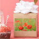 Rectangular photo sticker of vibrant red poppy flowers in a green field full of poppies. It has a strong emotion of hapiness, spring and summer.