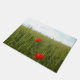 Vibrant red poppies amongst young green wheat ears growing in the Dordogne, France