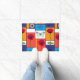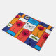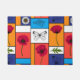 Colourful boxes and hand drawn poppies, daisy and butterfly, seamless vector pattern