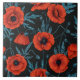 Poppies, red and blue on black ceramic tile