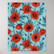 Poppies, red and blue on pool blue poster