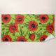 Poppies, red and green on lime green beach towel