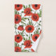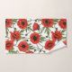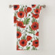 Poppies, red and green on white bath towel set