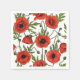 Poppies, red and green on white napkin